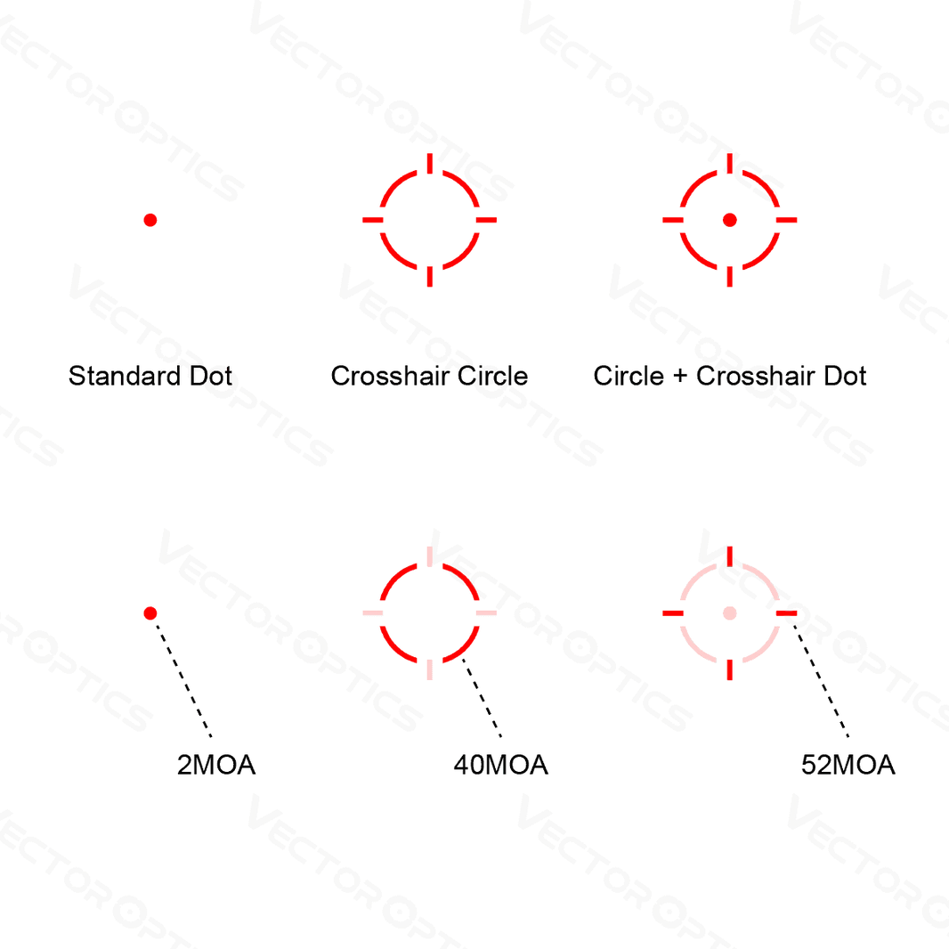 - Reticle: 2MOA Dot, Dot with Circle, Circle