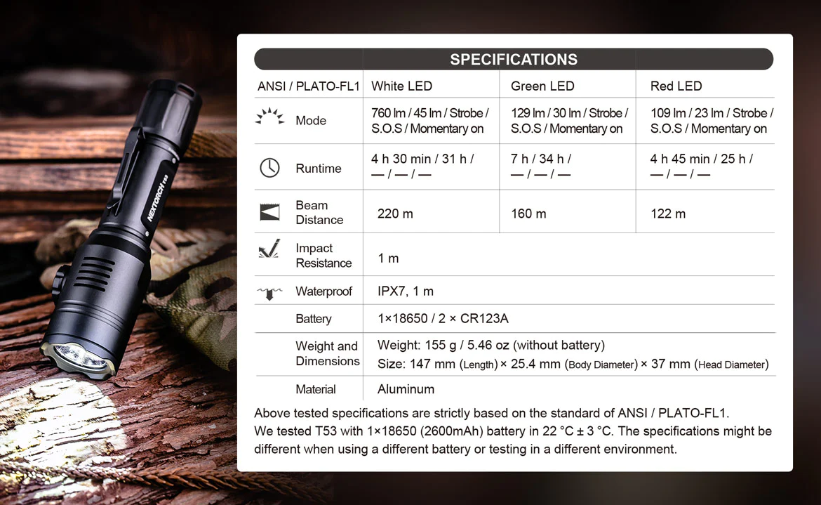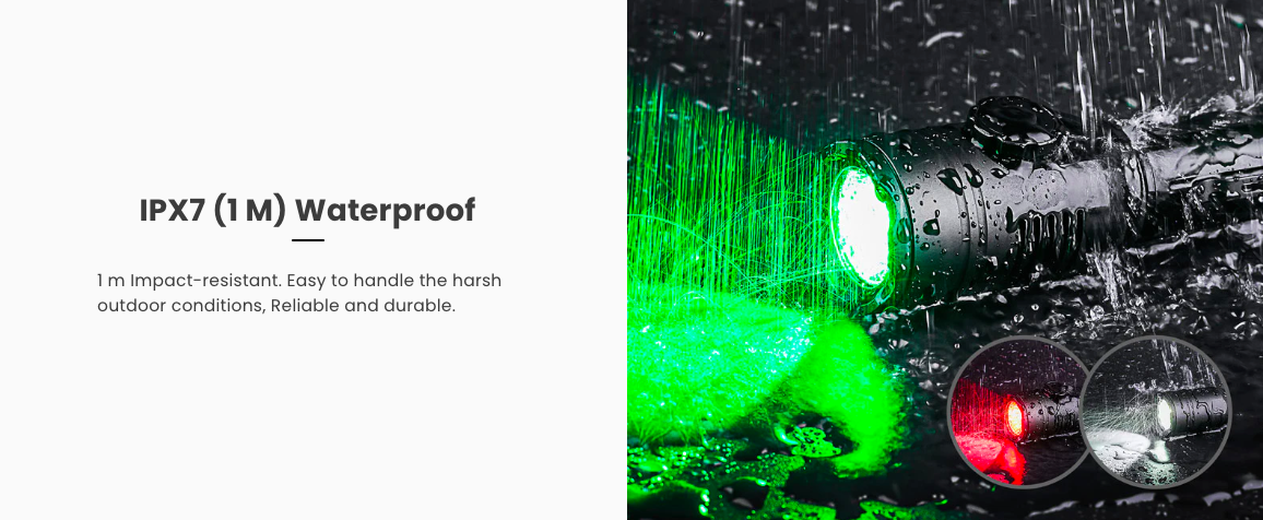 • White, Green, Red Lights Available, Max 760 lumens Output